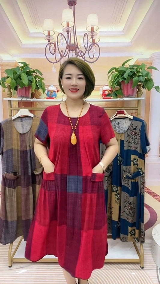 [50-100kg] 2025 καρό φόρεμα για τους μετακινούμενους άνετο μοντέρνο ευρύ φόρεμα για τη μαμά