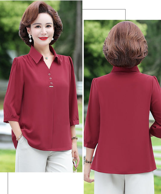 💓💓【50-90kg】2025 Νέο φθινοπωρινό μακρυμάνικο πουκάμισο σιφόν
