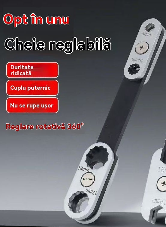 Σταθερό κλειδί οκτώ σε ένα, περιστρεφόμενο 360 μοίρες και ρυθμιζόμενο
