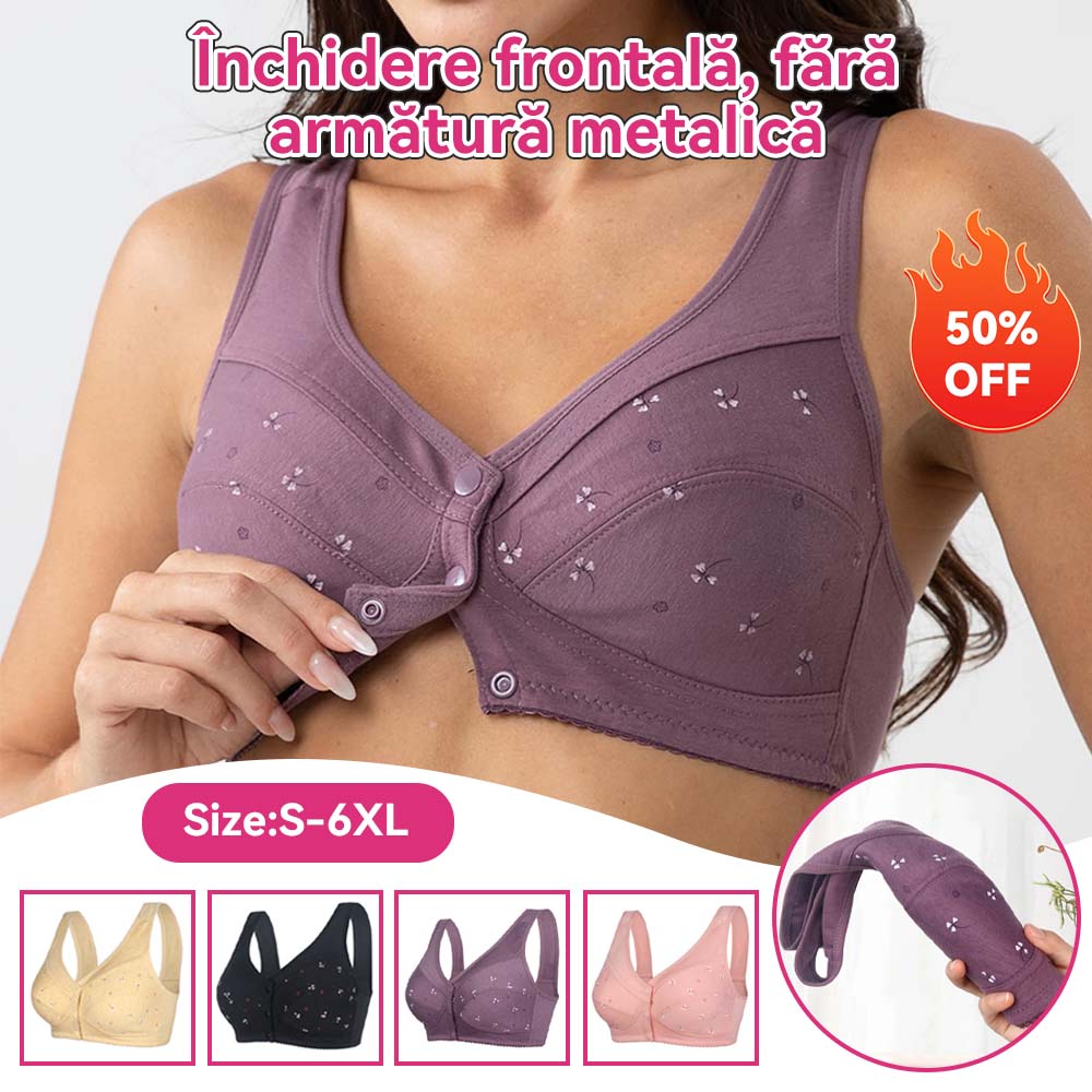 ✨【Αγοράστε 3 και πάρτε 3 δωρεάν】💞[40-105kg]Κομψό βαμβακερό σουτιέν με κουμπιά μπροστά για γυναίκες μέσης ηλικίας🎉49% έκπτωση