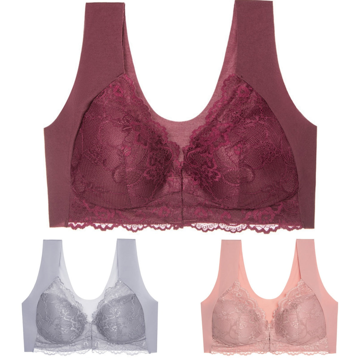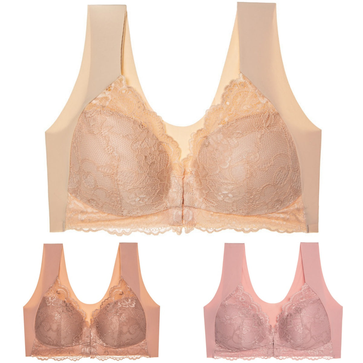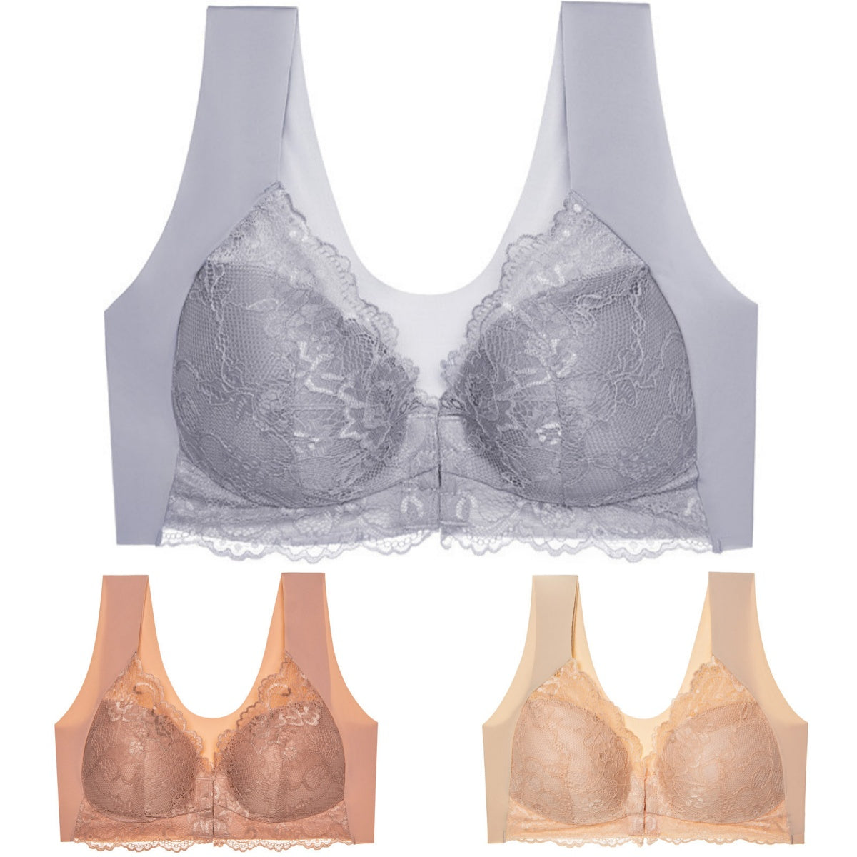 ✨【Αγοράστε 3 και πάρτε 3 δωρεάν】【3/6 τεμάχια】 Μεγάλο μέγεθος με μπροστινό κούμπωμα, σέξι, χωρίς μπανέλα, σουτιέν με όμορφη πλάτη