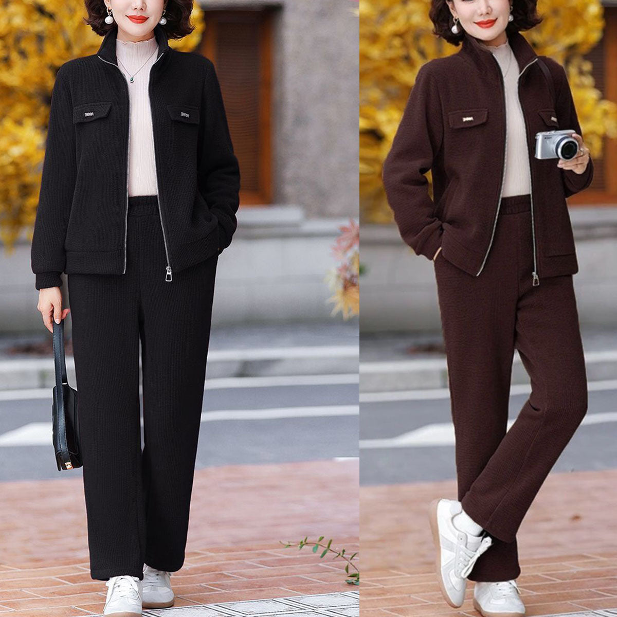 💥【M-4XL】Γυναικείο κοστούμι casual βελούδινο παχύ (τζακάκι + παντελόνι)