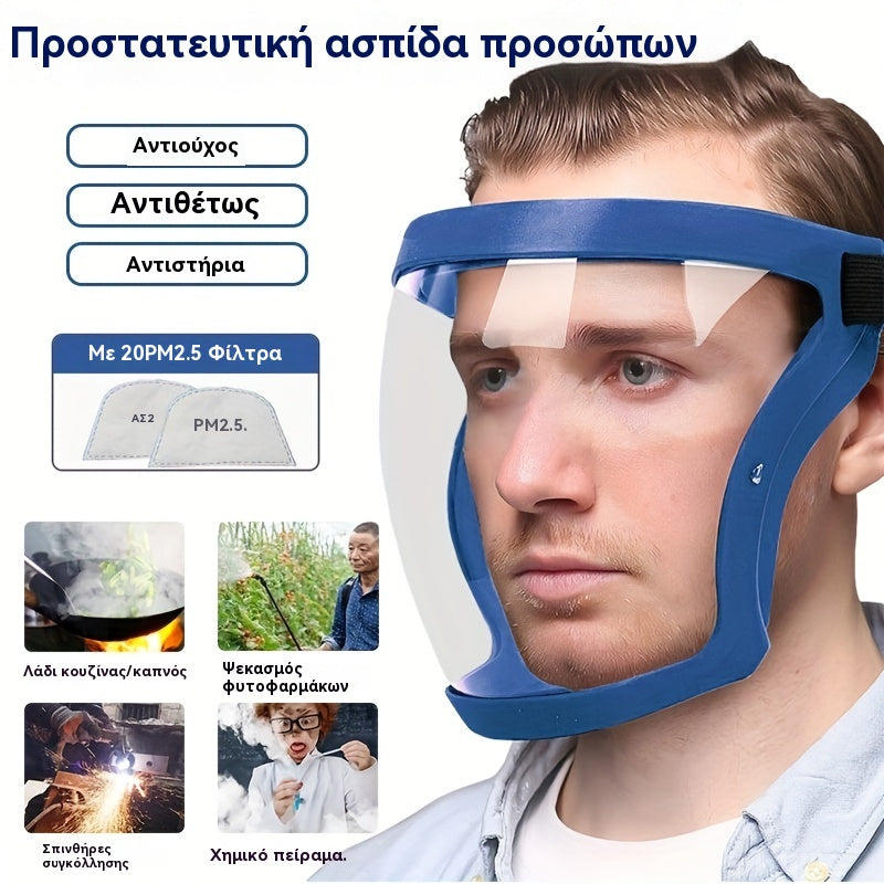 【1 μάσκα + 20 βαμβάκι φίλτρου】Διαφανής προστατευτική μάσκα υψηλής ανάλυσης, άνετη, αναπνεύσιμη και αντιθαμβωτική