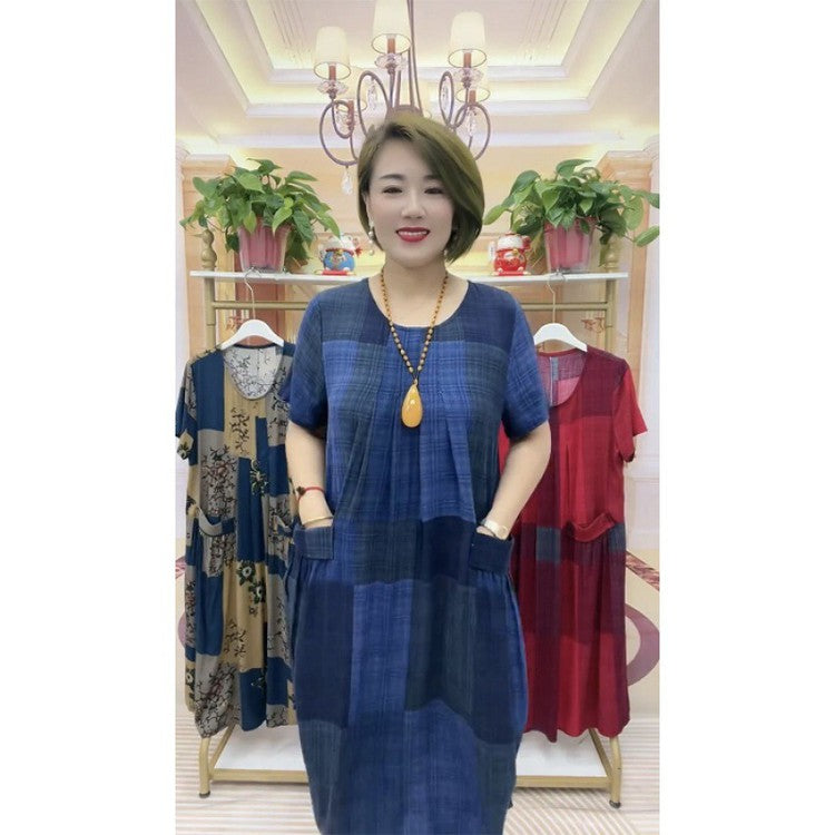 [50-100kg] 2025 καρό φόρεμα για τους μετακινούμενους άνετο μοντέρνο ευρύ φόρεμα για τη μαμά